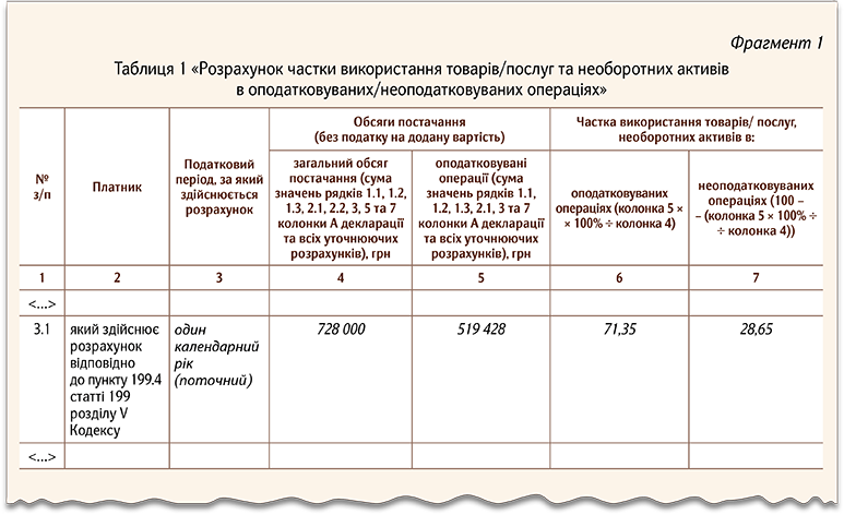 - 6 — частку (у відсотках) оподатковуваних операцій у загальному обсязі операцій. Щоб її визначити, помножте значення графи 5 на 100% і поділить на значення графи 4;